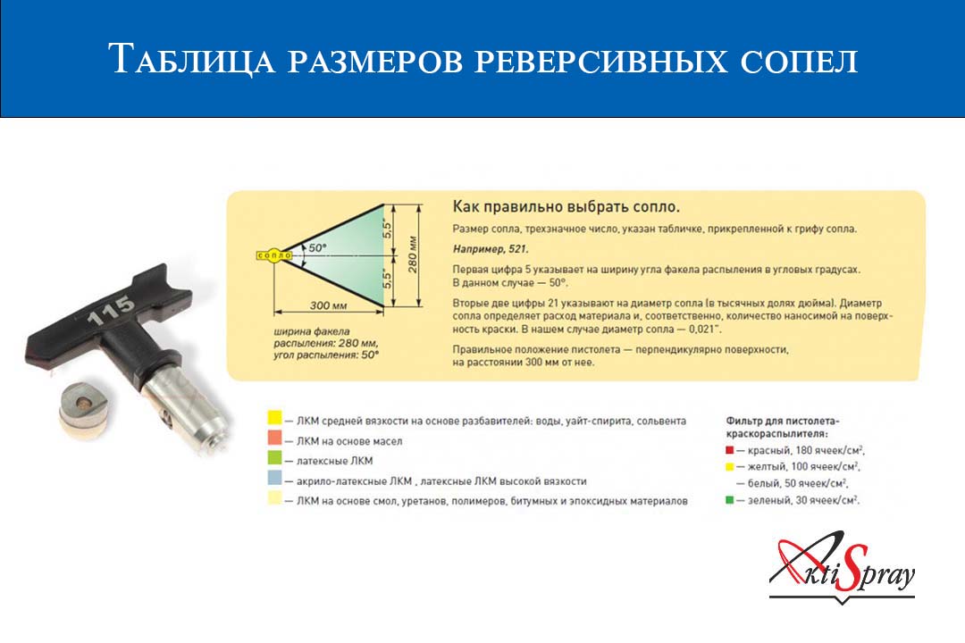 Таблица размеров реверсивных сопел